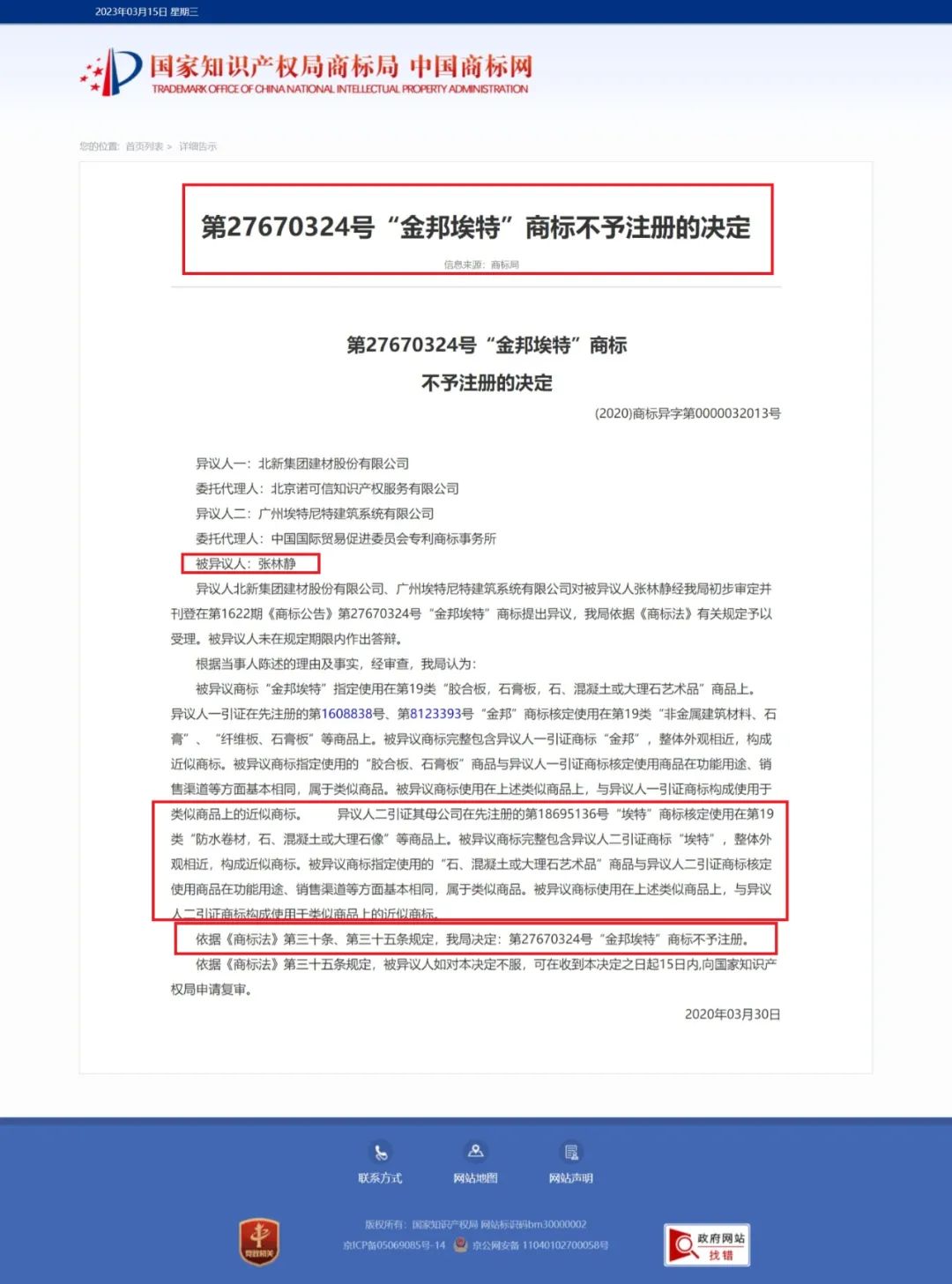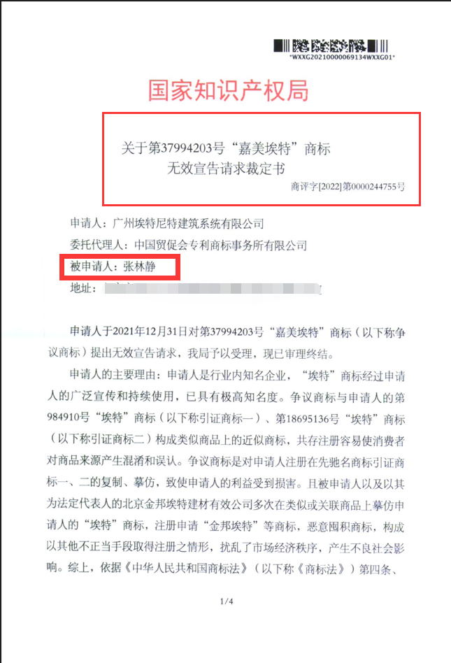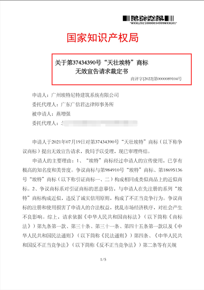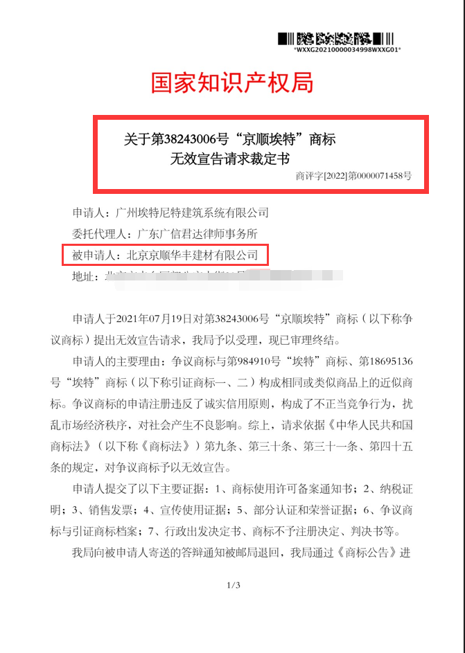 廣州埃特尼特建筑系統有限公司依法注冊持有或獲埃泰集團(Etex Group)授權使用“埃特尼�?、埃�?、Eternit?、埃特尼特佳�?、埃特佳�?、佳�?、佳�?、賽�?、瓷�?”等數十個商標,應受到法律保護。中工林壁公司在生產銷售同類建筑材料產品過程中,在未經授權允許的情況下擅自使用與廣州埃特尼特建筑系統有限公司注冊商標相同的字眼,杭州商易信息技術有限公司作為“建材網”平臺的運營者,沒有對商家的侵權行為盡到合理注意義務,兩者行為均構成侵權,應當承擔相應法律責任�為此,我司委托專業律師團隊針對“北京中工林壁板業有限公司”和“杭州商易信息技術有限公司”的商標侵權、不正當競爭行為,于2021�11�30日向法院提起訴訟。經過長達一年有余的審理,北京市東城區人民法院�2022�12 �5日對此案件作出判決,判令被告北京中工林壁板業有限公司的法人代表羅林華及股東李保軍、杭州商易信息技術有限公司于判決生效之日起立即停止侵犯我司相關注冊商標,并賠償我司經濟損�300000� 及合理支�26500��